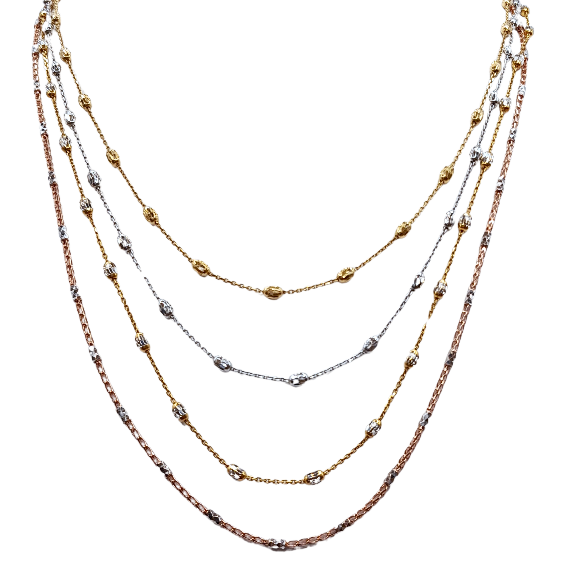 Elevate your jewelry collection with our exquisite gold chains, crafted for elegance and versatility. Available in stunning variations, these pieces are perfect for everyday wear or special occasions.